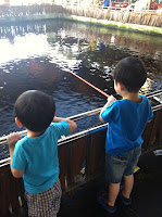 I think this is Leroy's first time joining us here as normally Lervin will be the one with us. He's pretty active and curious compared to Lervin's first time here. So I let him hold the rod and he's happy ! When 1 is doing, the other also want to do!
